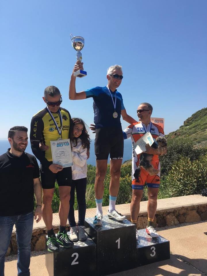 Θριάμβευσε με 2 χρυσά μετάλλια ο Πατρινός αθλητής μας Χρήστος Τζόλας του Α.Ο. Πήγασου Κυψέλης στη κατηγορία του (40+) στους Ποδηλατικούς αγώνες Ατομικής Χρονομέτρησης και Αντοχής που διοργάνωσε το Σωματείο ΠΑΣ Πηνειός στη περιοχή του Κισσάβου το διήμερο 6 και 7/4/2019 με την επωνυμία “6th Kissavos Road Tour 2019”. Στον ίδιο αγώνα συμμετείχε και εντυπωσίασε και ο Κερκυραίος αθλητής μας Κώστας Ανυφαντής του Α.Ο. Πήγασος Κυψέλης, ο οποίος κατέλαβε στη κατηγορία του (50+) την 4η θέση στον αγώνα ατομικής Χρονομέτρησης και την 9η θέση στον αγώνα Αντοχής.