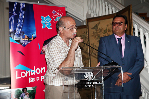 Στις 16/7/2012 έγινε στη Βρετανική Πρεσβεία της Αθήνας εκδήλωση – δεξίωση με ευχές για καλή τύχη στην Ελληνική Ολυμπιακή Ομάδα και στην Ελληνική Παραολυμπιακή Ομάδα, που θ’ αγωνισθούν στους Ολυμπιακούς και Παραολυμπιακούς Αγώνες Λονδίνο 2012. Σ’ αυτήν παρευρέθηκαν μεταξύ άλλων ο Γενικός Γραμματέας της Ελληνικής Παραολυμπιακής Επιτροπής, σαν εκπρόσωπός της, κ. Δημήτρης Λιανός, Πρόεδρος του ΑΣΑΜΕΑ Πήγασου Κυψέλης, ο οποίος και μίλησε σχετικά, καθώς και ο Παραολυμπιονίκης αθλητής Ποδηλασίας στο Πεκίνο 2008 (6ος) Σταμάτης Κοτζιάς, αθλητής του Σωματείου μας ΑΣΑΜΕΑ Πήγασος Κυψέλης και κορυφαίος Έλληνας Ποδηλάτης ΑμεΑ. Ο Σταμάτης Κοτζιάς έχει κάνει καλή προετοιμασία με το προπονητή του Κωνσταντίνο Γκρέκα και συγκεντρώνει μεγάλες ελπίδες για νέα διάκριση της χώρας μας στη Ποδηλασία και στο Λονδίνο 2012. Από την εκδήλωση αυτή παραθέτουμε βίντεο μικρής διάρκειας και φωτογραφίες, μεταξύ των οποίων είναι και αναμνηστική φωτογραφία του κ. Πρέσβη με τον κ. Δημ. Λιανό, μαζί με το αναμνηστικό δώρο – πίνακα του κ. Πρέσβη προς την Ελληνική Παραολυμπιακή Επιτροπή, καθώς και άλλη από την ομιλία του κ. Δ. Λιανού. Σημειώνουμε επίσης ότι αυτή ήταν η τρίτη εκδήλωση της Βρετανικής Πρεσβείας για την Ελληνική Παραολυμπιακή Ομάδα για το Λονδίνο 2012, μέσα σε διάστημα δύο περίπου μηνών.