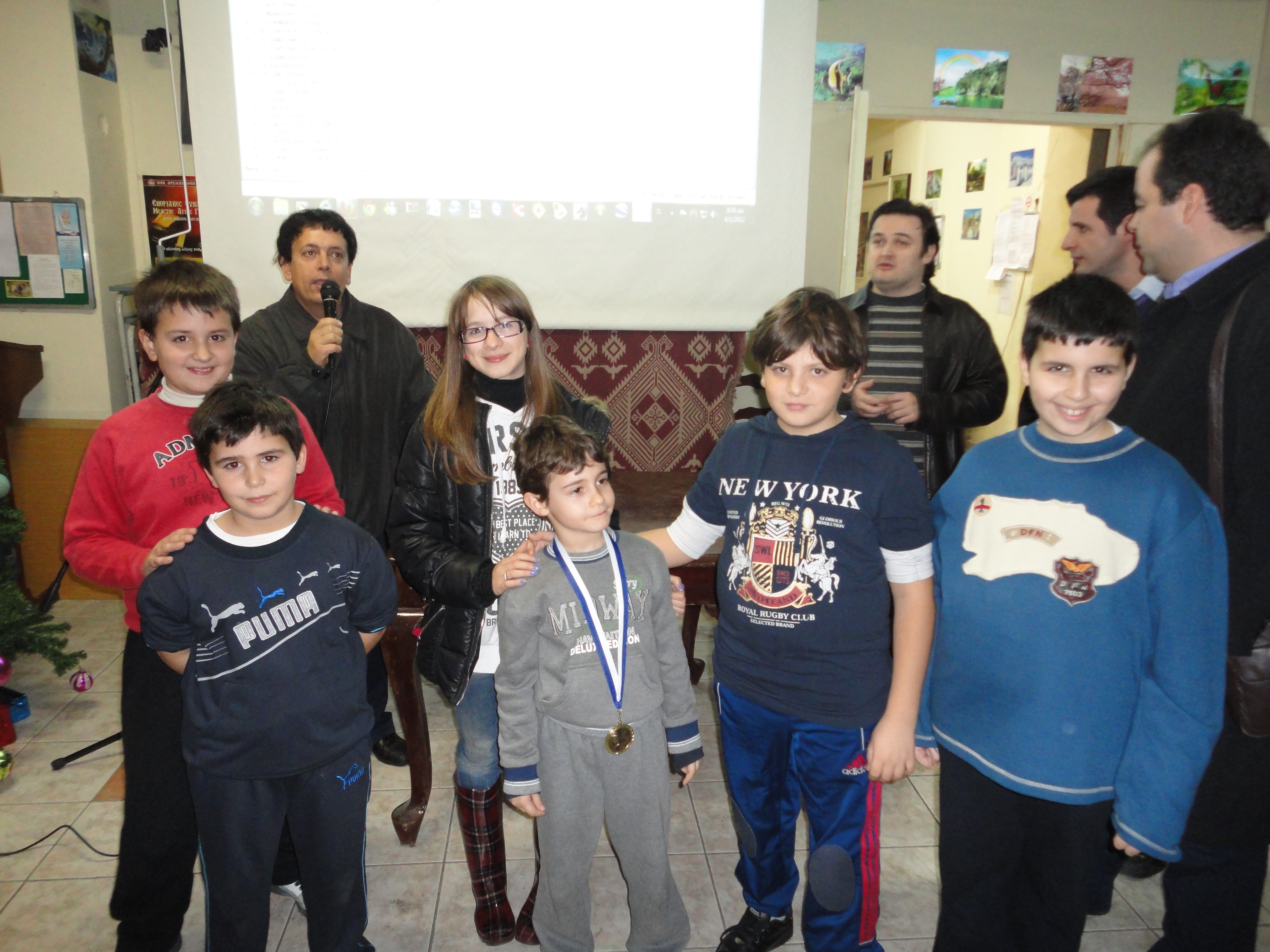 Διακρίνονται ο προπονητής της ομάδας μας Σκακιού και του 5ου Δημοτικού Σχολείου Αθηνών κ. Στέλιος Δοκιμάκης και οι νεαροί βασικοί αθλητές της ομάδας μας Σκακιού που αγωνίζονται και στην ομάδα του 5ου Δημοτικού Σχολείου Αθηνών.