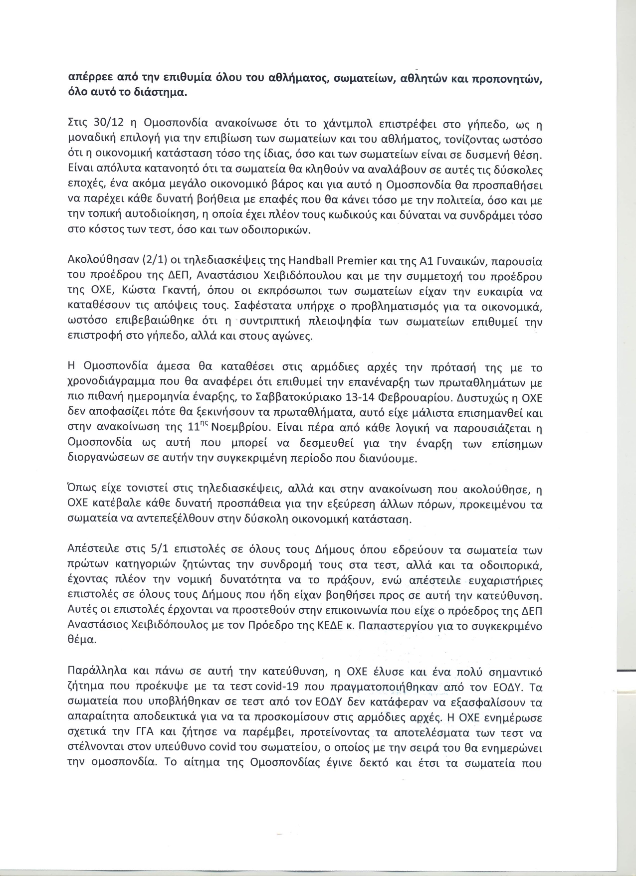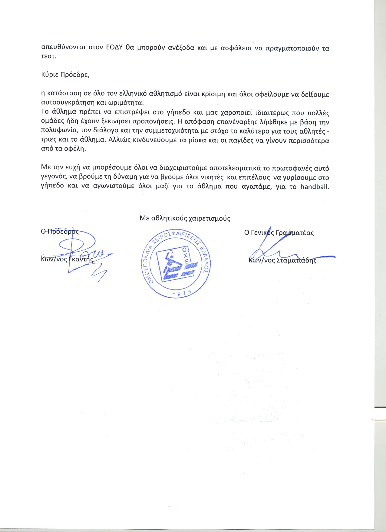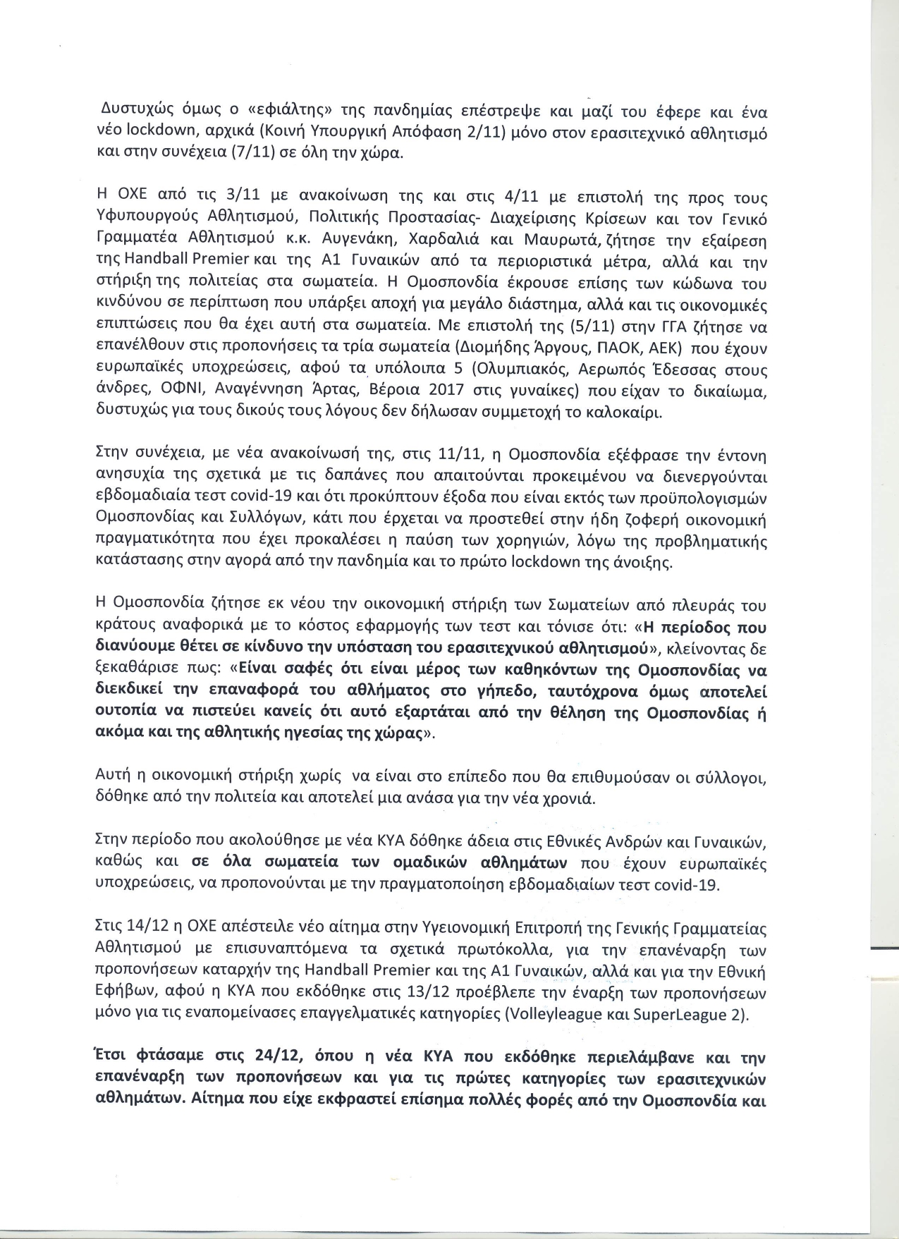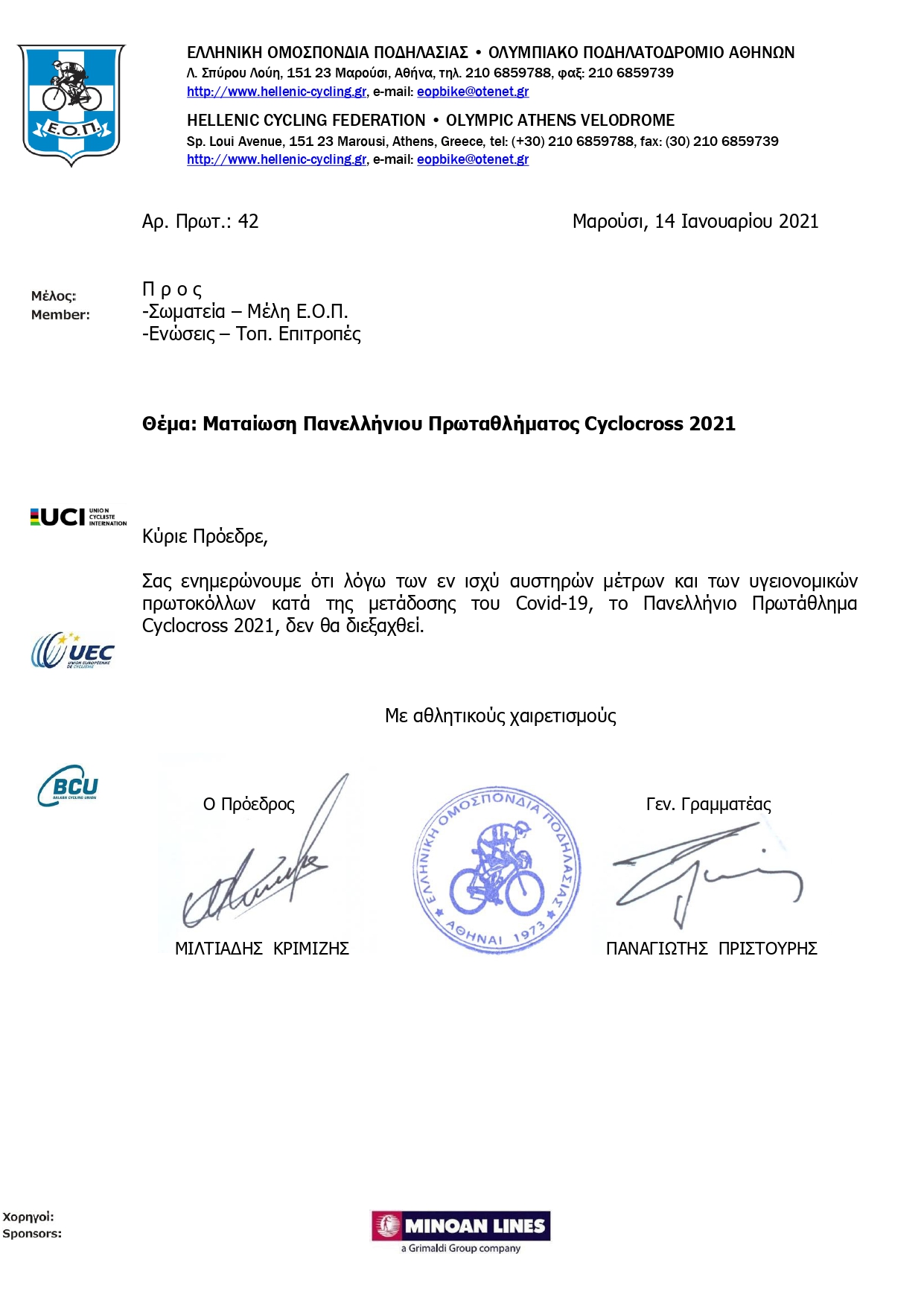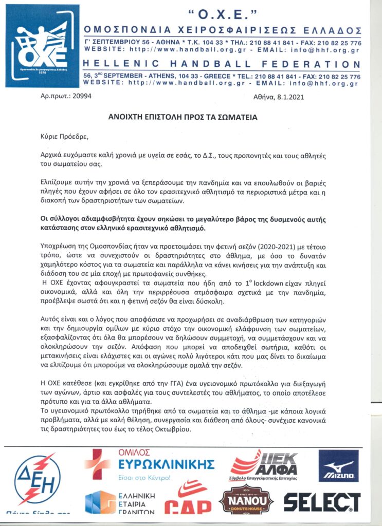 Ενημερώνουμε τους αθλητές μας για τις επιστολές ενημέρωσης που εστάλησαν τις τελευταίες ημέρες στο Σωματείο μας.