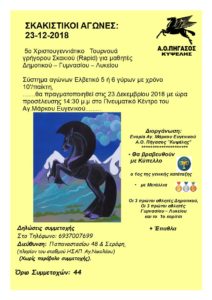Το 5ο Χριστουγεννιάτικο Μαθητικό Κύπελλο γρήγορου Σκακιού διεξηχθει με μεγάλη επιτυχία στις 17/12/2018 στο Πνευματικό Κέντρο του Αγίου Μάρκου Ευγενικού Κάτω Πατησίων με την συμμετοχή 28 σκακιστών και σκακιστριών. 21 αθλητές και 7 αθλήτριες αγωνίστηκαν σε  σύστημα ελβετικό σε έξι (6) αγωνιστικούς γύρους με χρόνο σκέψης 10΄για κάθε σκακιστή/σκακίστρια σε κάθε παρτίδα. Άξιος Μεθοδικός και …