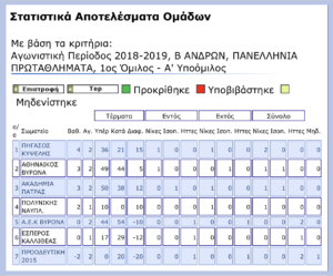 Αγωνιστική Περίοδος 2018-2019, Β’ Ανδρών, ΠΑΝΕΛΛΗΝΙΑ ΠΡΩΤΑΘΛΗΜΑΤΑ, 1ος Όμιλος – Α΄ Υποόμιλος.