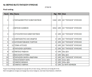 Ο Κώστας Παπαδημητρίου του Α.Ο. ΠΗΓΑΣΟΣ ΚΥΨΕΛΗΣ θριάμβευσε αήττητος με 7 βαθμούς στο τέταρτο (4ο) θερινό τουρνουά Σκακιού Μπλιτς ( BLITZ ) που διοργάνωσε με επιτυχία ο Α.Ο. Πήγασος Κυψέλης στις 27/6/2018, για μαθητές της μέσης και της δημοτικής εκπαίδευσης.