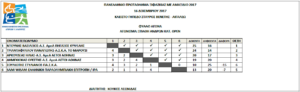 Τα επίσημα αποτελέσματα των 6 πρώτων αθλητών στην κατηγορία ΑΝΔΡΩΝ του Πανελληνίου Πρωταθλήματος Τριάθλου 2017, που έγινε στις 22/10/2015 (με μεγάλη επιτυχία – 2η θέση – του πρωταθλητή μας ΣΠΥΡΟΥ ΓΚΟΤΖΙΑ του Α.Ο. ΠΗΓΑΣΟΣ ΚΥΨΕΛΗΣ), όπως έγιναν γνωστά από την διοργανώτρια Αθλητική Ομοσπονδία Ε.Ο.ΜΟ.Π.