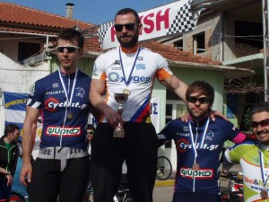 Θρίαμβοι των αθλητών ποδηλασίας του Α.Ο. Πήγασου Κυψέλης που γέμισαν το βάθρο των νικητών στον αγώνα Αντοχής του τοπικού Πρωταθλήματος Ποδηλασίας Δρόμου 2014 που έγινε στη 1/3/2014 στο Κατσιμίδι